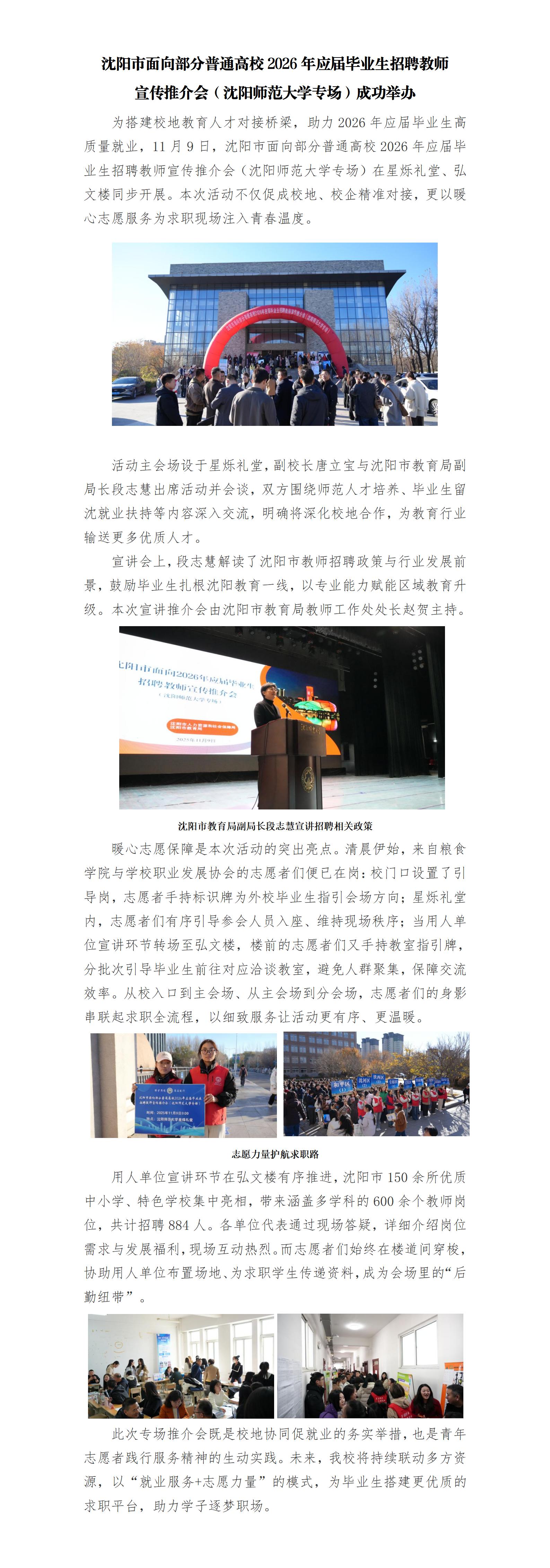 沈阳市面向部分普通高校2026年应届毕业生招聘教师 宣传推介会(沈阳师范大学专场)成功举办-365平台